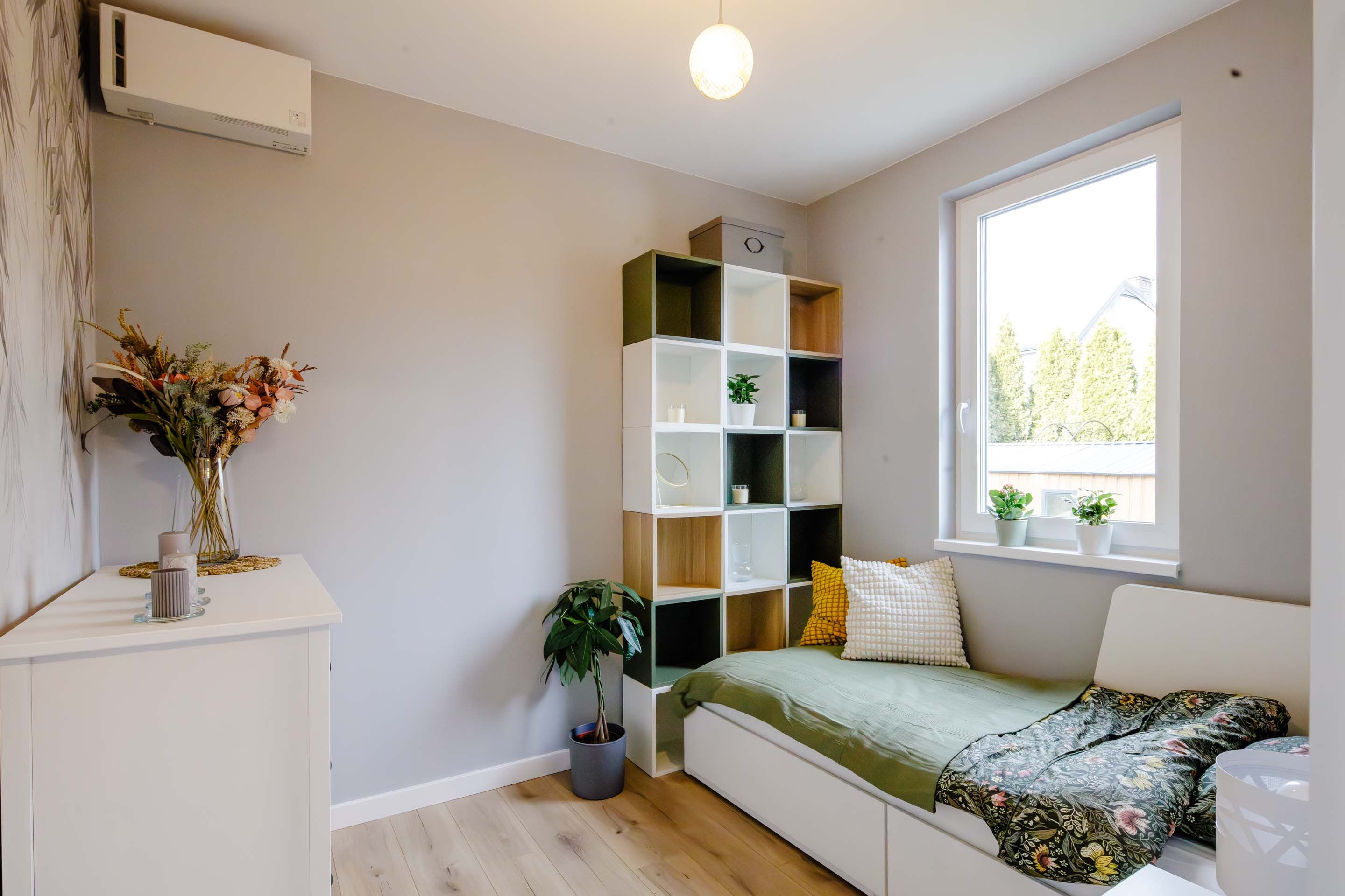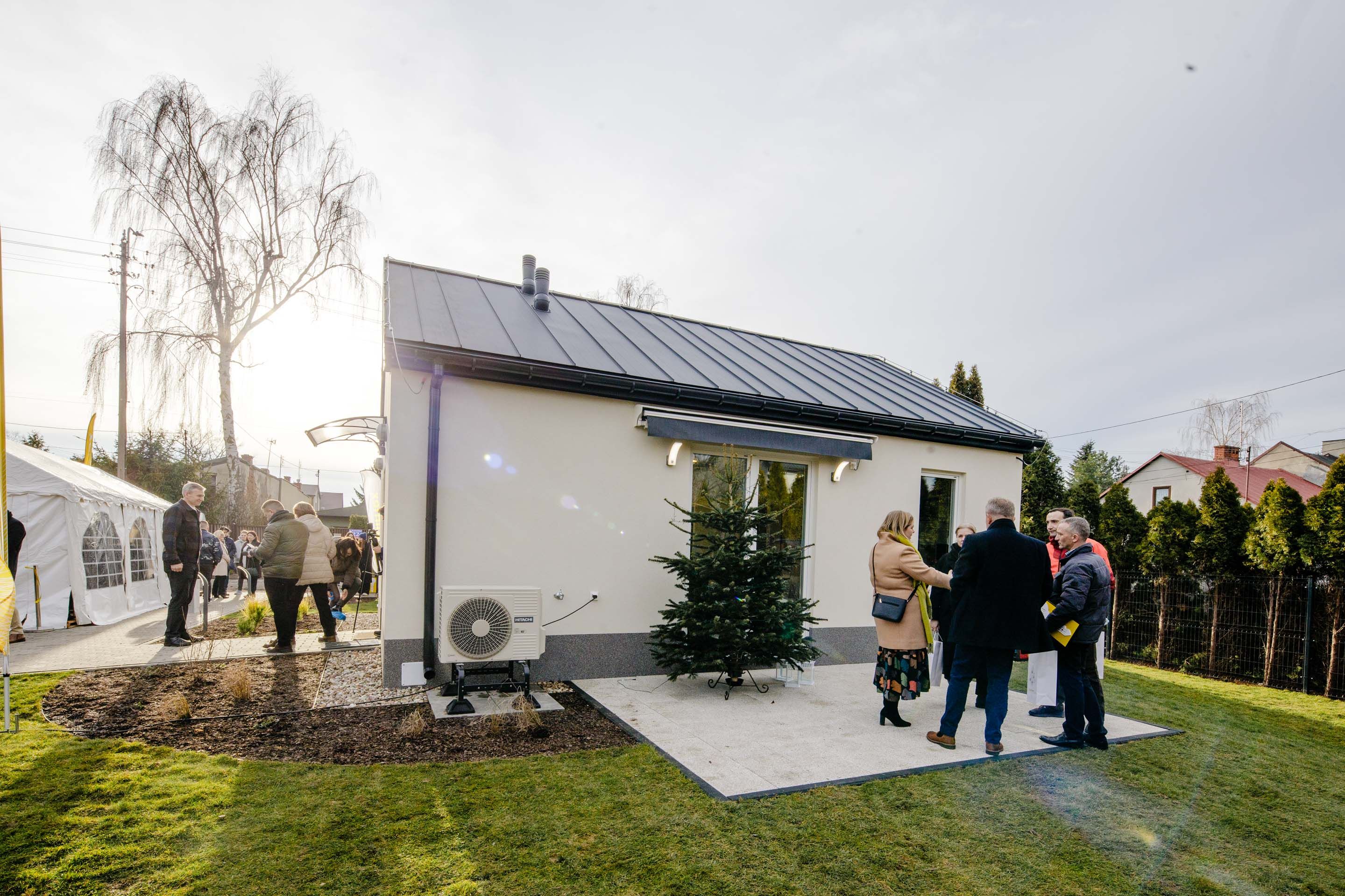 Dom dla Pani Teresy został wykonany w technologii modułowej, co pozwoliło na znaczne skrócenie czasu budowy bez kompromisów w zakresie jakości. Poszczególne elementy zostały przygotowane w fabryce i następnie złożone na miejscu, co umożliwiło sprawną realizację projektu. W proces ten zaangażowanych było wielu partnerów, w tym firma WIŚNIOWSKI, która dostarczyła nowoczesne i bezpieczne rozwiązania w zakresie okien i drzwi, podnosząc tym samym komfort i bezpieczeństwo nowego domu.