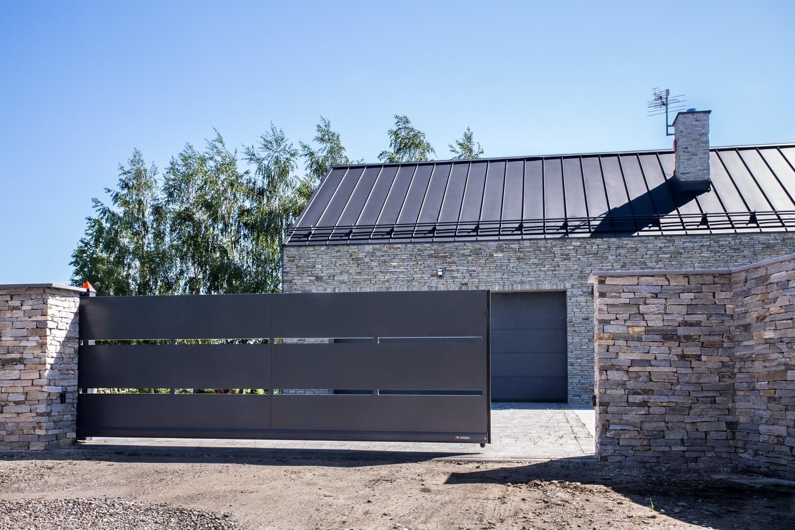 Wybrana do tego projektu brama wjazdowa i ogrodzenie MODERN wzór AW.10.110 ma w sobie odpowiednie wyróżniki, by stanowić element nowoczesnej posesji, która podkreśla swoje związki z naturą.