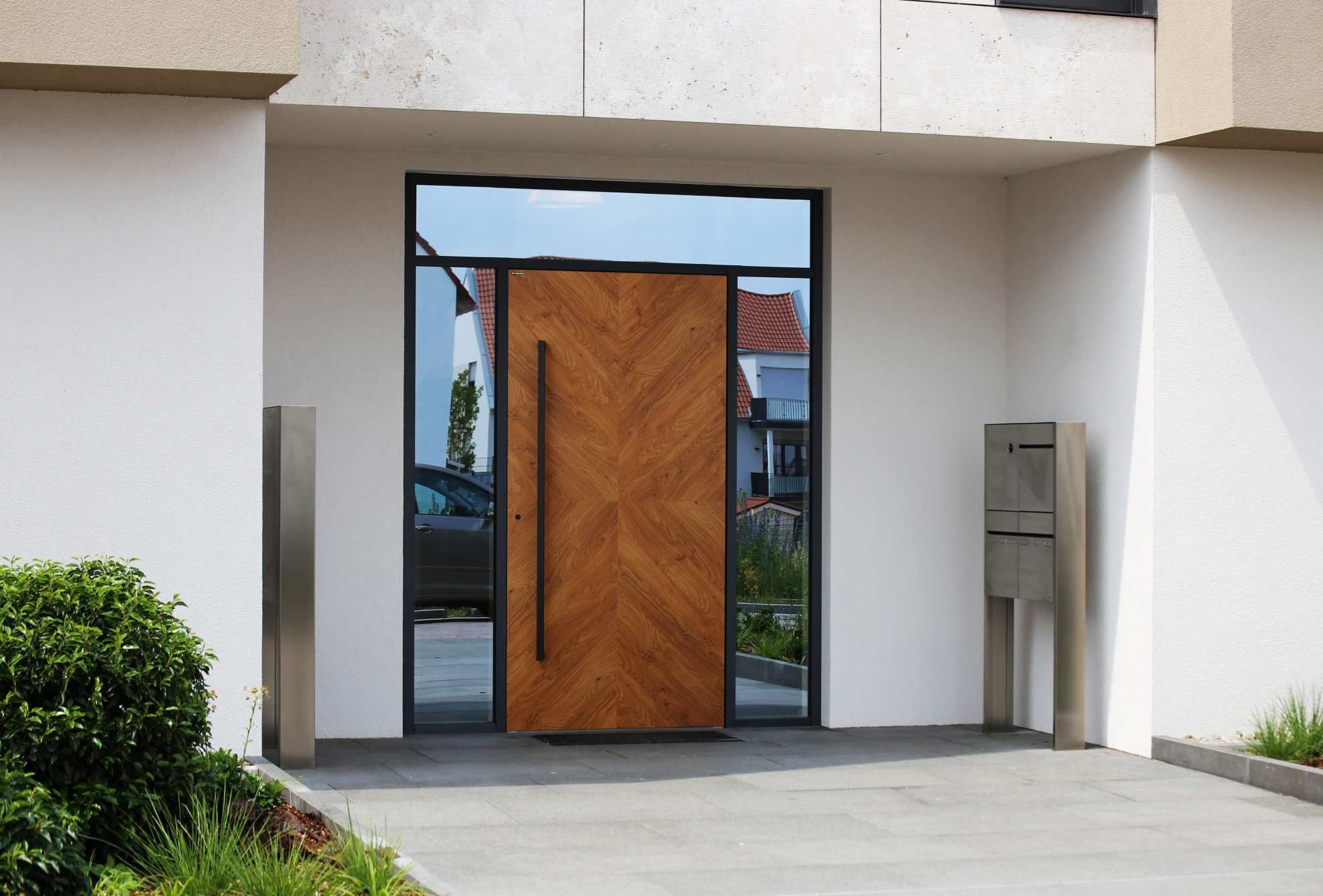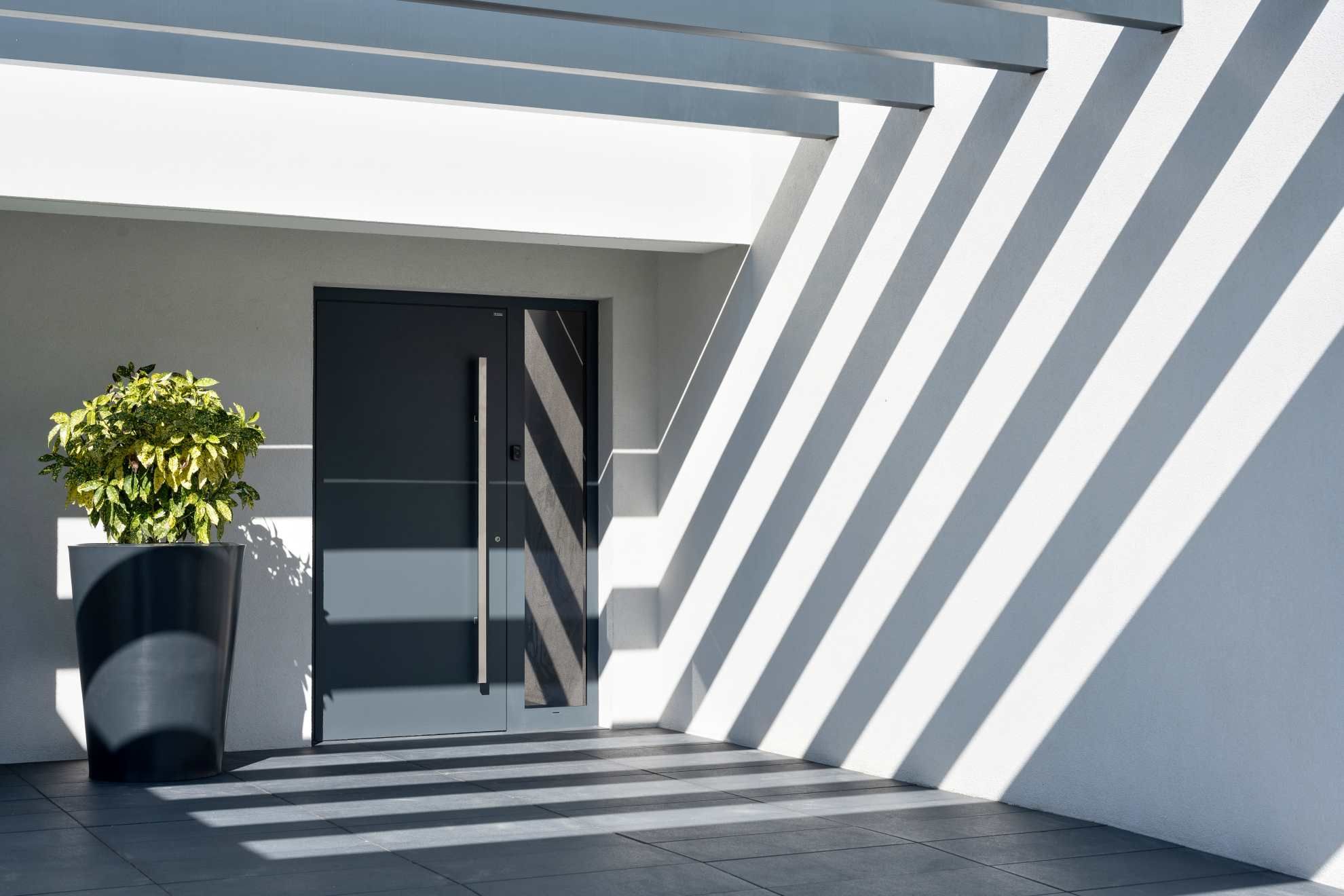Naturalne światło w strefie wejściowej zapewnia estetykę i komfort. Przeszklenia optycznie powiększają przestrzeń, dodając jej lekkości i nowoczesnego charakteru. Ma to znaczenie szczególnie w wąskich, niewielkich miejscach, gdzie brakuje innych źródeł światła dziennego. Dzięki możliwości wyboru układu przeszkleń, drzwi można idealnie dopasować do architektury budynku oraz indywidualnych preferencji domowników.