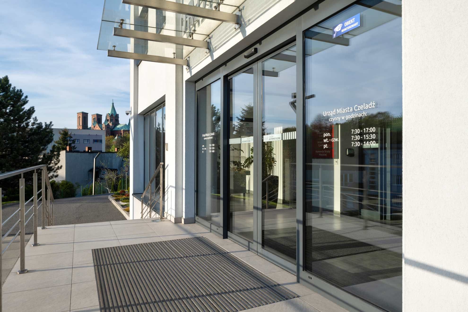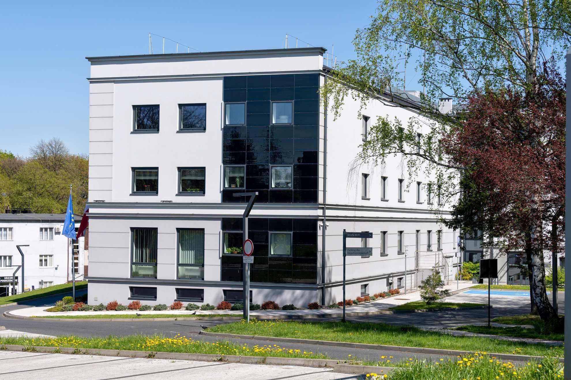 - stolarka przeciwpożarowa wewnętrzna i zewnętrzna – gwarantująca spełnienie rygorystycznych norm bezpieczeństwa, tak istotnych w budynkach administracji publicznej.