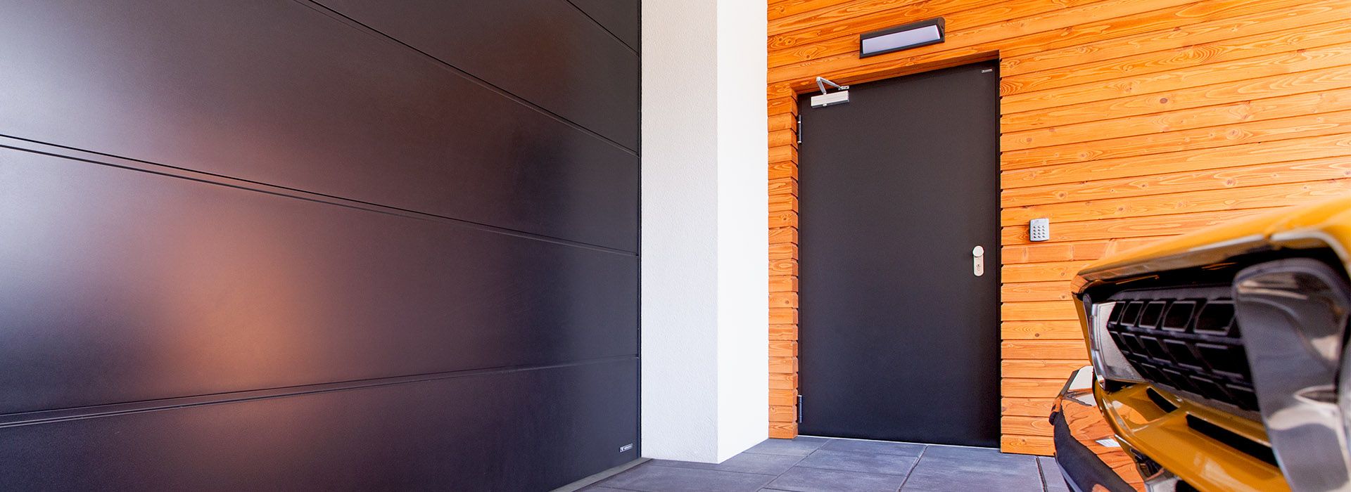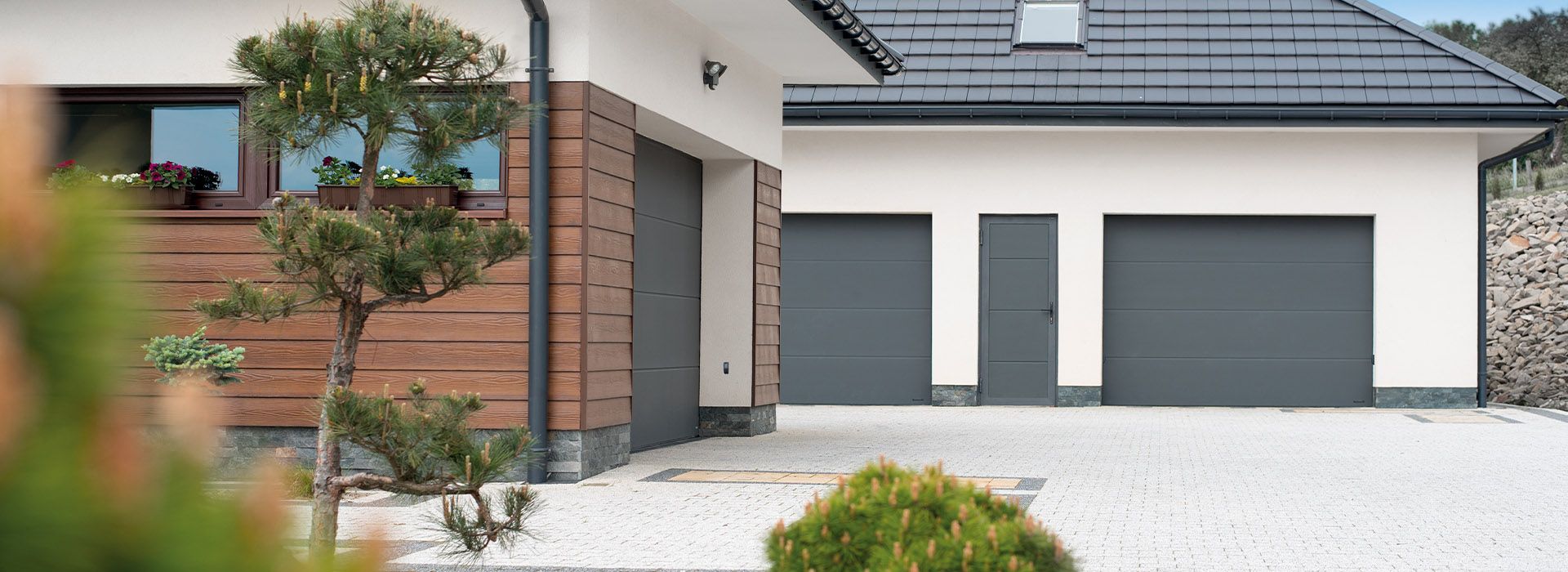 Aluminiowe drzwi panelowe to doskonałe rozwiązanie jako dodatkowe wejście do garażu wyposażonego w bramę segmentową lub rolowaną. Dzięki spójnym wzorom i konstrukcji z tego samego materiału (aluminium) będą stanowiły estetyczny i funkcjonalny element budynku. W wersji dwuskrzydłowej mogą również pełnić rolę bramy garażowej.