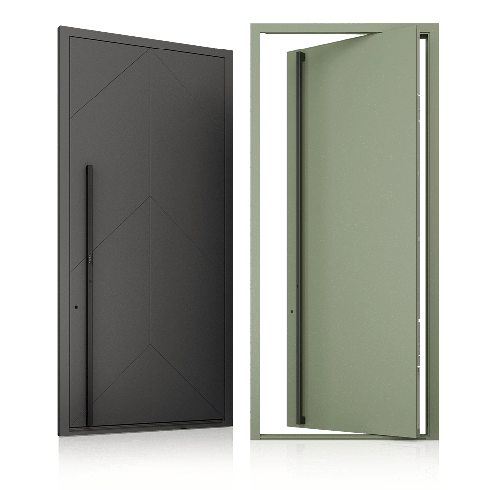 Drzwi aluminiowe PIRUE mogą być opcjonalnie malowane proszkowo na inne spacjalne kolory z palety RAL (mat struktura)