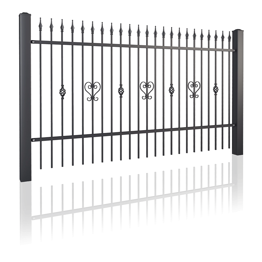 Stalowe pręty o przekroju 14x14 [mm], składające się na wypełnienie elementów z tej kolekcji, nadają konstrukcji wyjątkowej lekkości. W zależności od wzoru, górna krawędź ogrodzenia może być zakończona łukiem wypukłym, wklęsłym lub prosto. Zwróć uwagę na wersję przekoszoną, jeśli jesteś właścicielem działki o dużych różnicach wysokości.