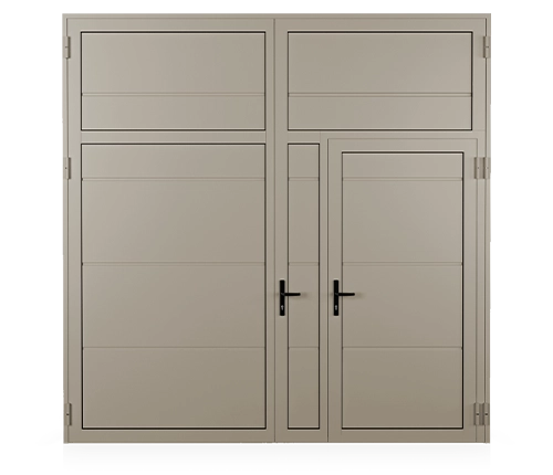Drzwi standardowo wyposażone w ogranicznik otwarcia drzwi przejściowych, który umożliwia otwarcie drzwi o kąt 95 stopni oraz w zamek z wkładką z trzema kluczami. Rzeczywiste światło przejścia w drzwiach przejściowych wynosi 940 x 2035 mm. Drzwi montowane są w skrzydle czynnym. Brama z drzwiami przejściowymi posiada poprzeczkę wzmacniającą nad drzwiami na wysokości 2087 mm.
