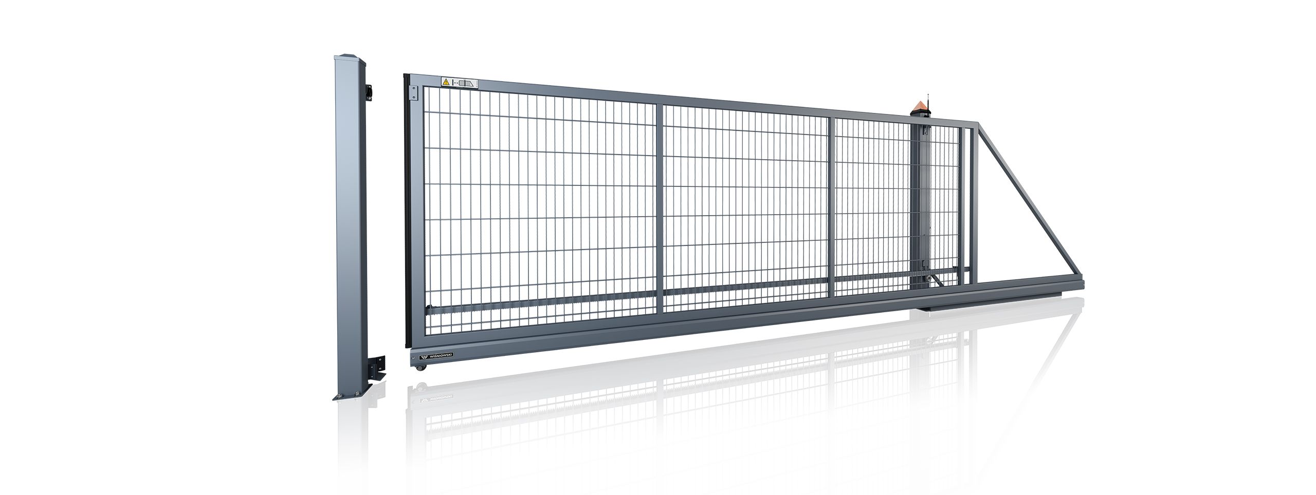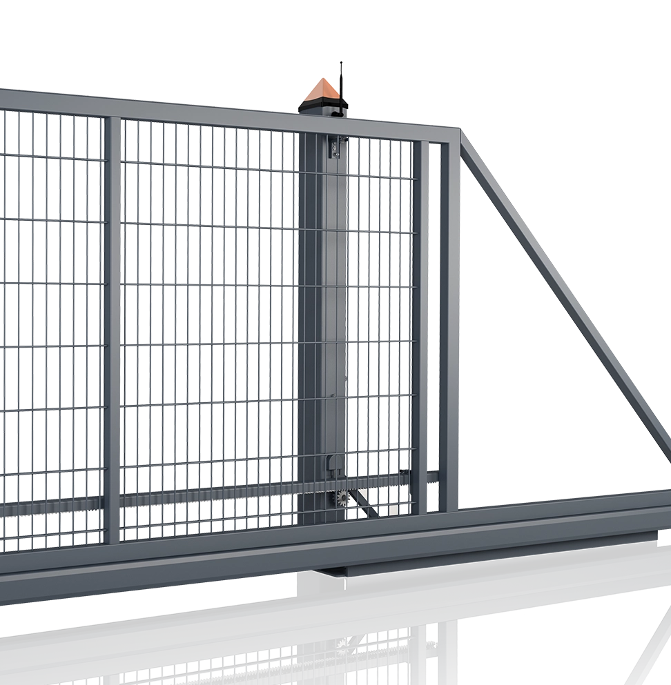 Konstrukcja opiera się na solidnych stalowych elementach. Szyna jezdna o wymiarach 95 x 85 mm gwarantuje trwałość i bezpieczną pracę. Wypełnienie z paneli kratowych VEGA 2D lub VEGA 2D Super spawanych do konstrukcji dodatkowo usztywnia bramę i zapewnia odpowiedni poziom ochrony.