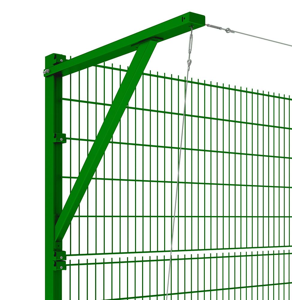 Rozwiązanie polecane do montażu ze słupami ProSport. Słupy wyposażone w przykręcane odkosy pod siatkę piłkochwytu. Słupy skrajne dodatkowo wzmocnione ukośnymi zastrzałami.