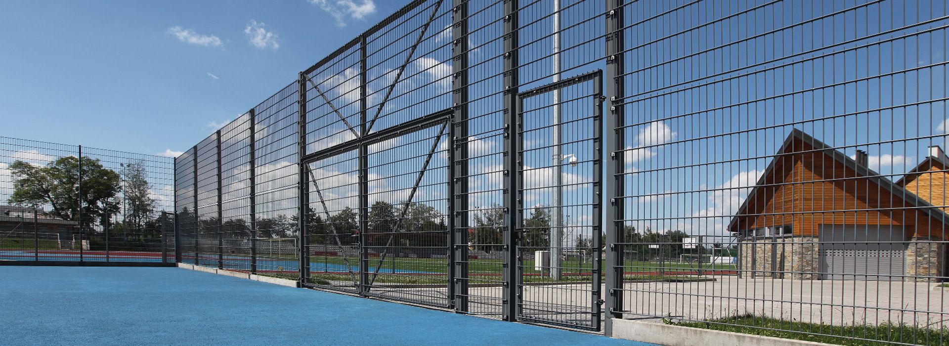 Ogrodzenia sportowe WIŚNIOWSKI to sprawdzone rozwiązania przeznaczone do: stadionów piłkarskich, boisk, obiektów lekkoatletycznych, kortów tenisowych. System sportowy stanowią elementy ogrodzeń przemysłowych, takie jak, panele kratowe z grupy VEGA 2D oraz VEGA B, panele sportowe VEGA 2D Super Sport, słupy sportowe o podwyższonym zakresie przekroju i wysokości, słupy z instalacjami piłko-chwytowymi, elementy kontroli dostępu, takie jak bramy skrzydłowe i furtki.